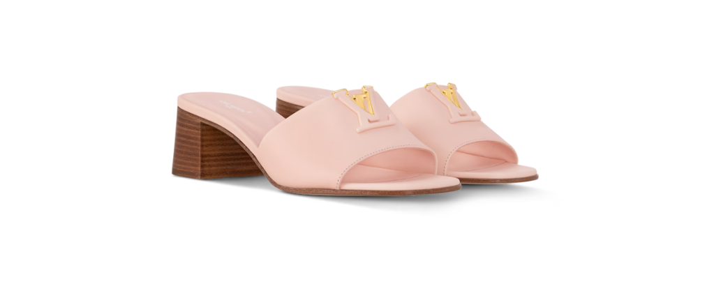 Crafted from smooth calf leather. Easy-to-wear block heel. The wide front strap is signed with a partially leather-covered LV Initials accessory. Finished with a durable leather outsole (Priced at $965.00).