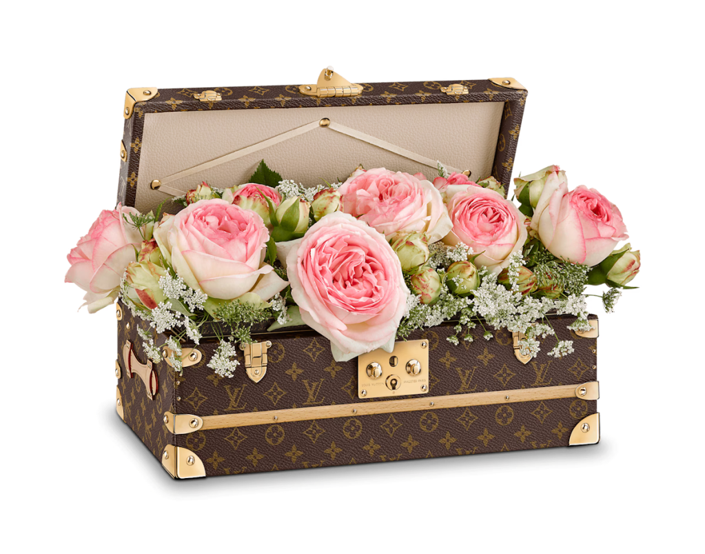 A romantic piece rooted in Louis Vuitton history, the Malle Fleurs is a reinterpretation of an iconic piece created in the 1910s for our very best clients: the flower trunk. The water-resistant metallic tray and Vuittonite lining mean that flowers, water, or soil can be put in the tray without damaging it (Priced at $7,450.00).